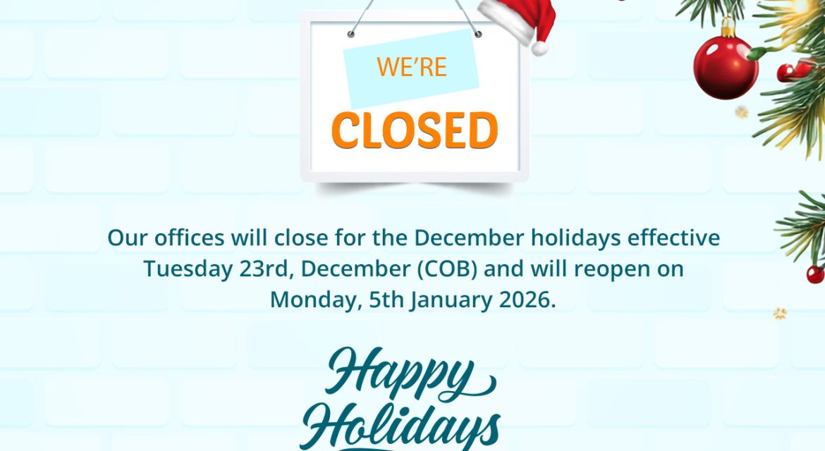 As we celebrate the festive season, we would like to inform our valued clients, partners, and stakeholders that our offices will be closed for the December holidays. 📅 Closure: Tuesday, 23rd December (Close of Business)📅 Reopening: Monday, 5th January 2026 We appreciate your continued trust and partnership throughout the year.